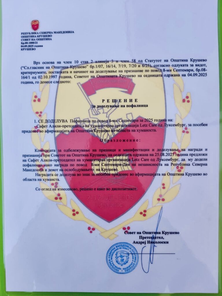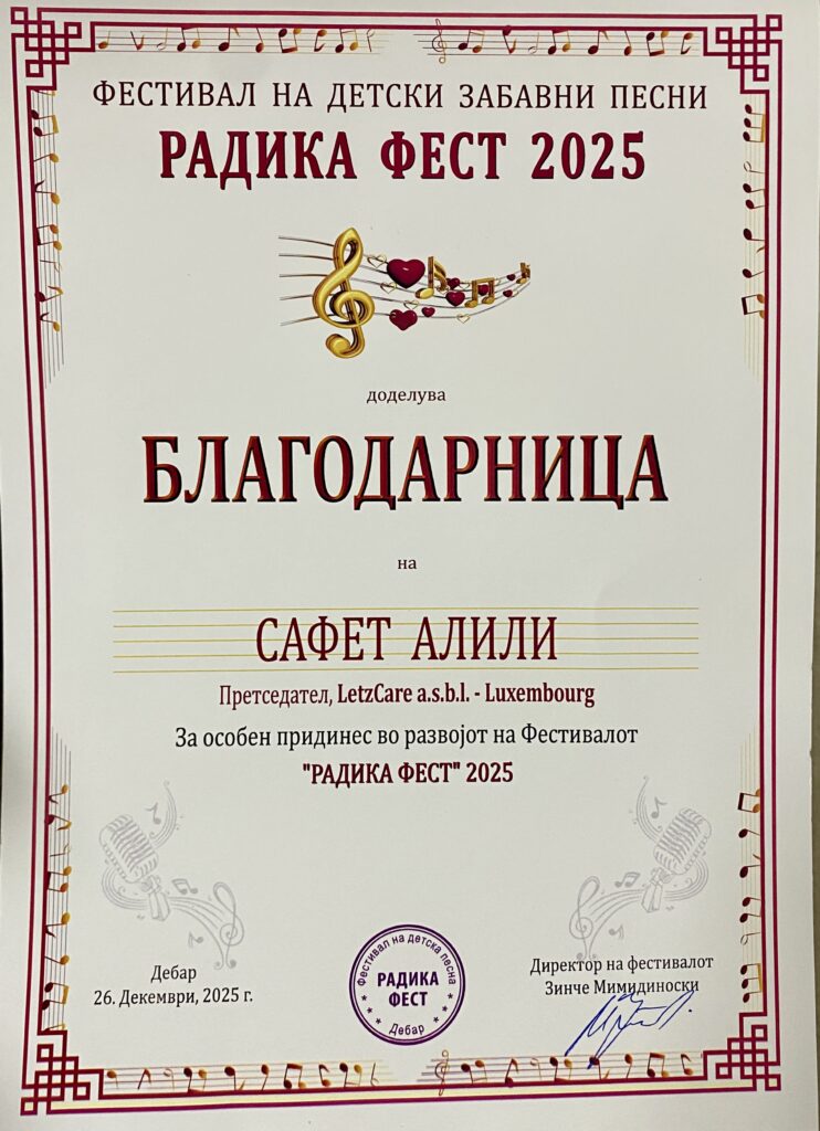 🇱🇺 Zanter 2019 hunn ech mäi humanitären Engagement duerch d’Grënnung vun der Organisatioun LetzCare a.s.b.l. zu Lëtzebuerg intensivéiert. D’Zil vun der ASBL ass et, Solidaritéit, Institutiounskooperatioun an Ënnerstëtzung fir vulnérabel Gruppen a Lëtzebuerg an Nordmazedonien ze verbannen. An dëser Zäit goufen eng Rei vun humanitäre Projeen , Donatioune vu medezineschem Material, Hëllefsmëttelen an edukativen Equipement ëmgesat, an och Zesummenaarbechten mat Gemengen, Institutiounen a Vereenegungen opgebaut. LetzCare huet sech zu enger Plattform entwéckelt, déi konkret a nohalteg Verbesserungen duerch transparent an kontinuéierlech Aarbecht méiglech mécht.